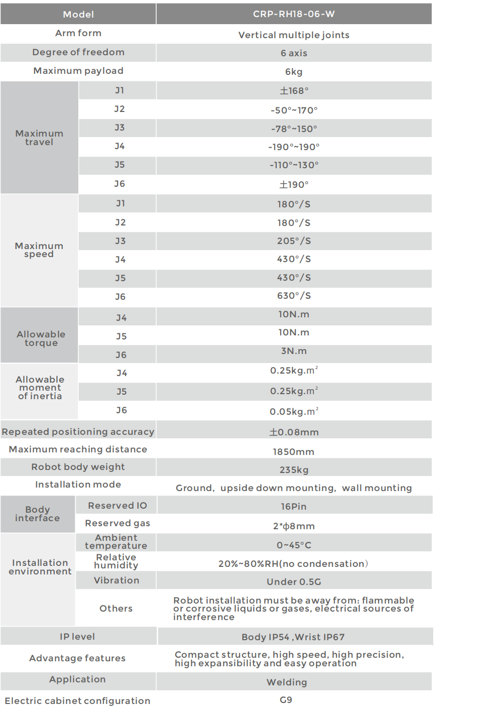 J4,J6 axis hollow structure, can use hollow welding gun;