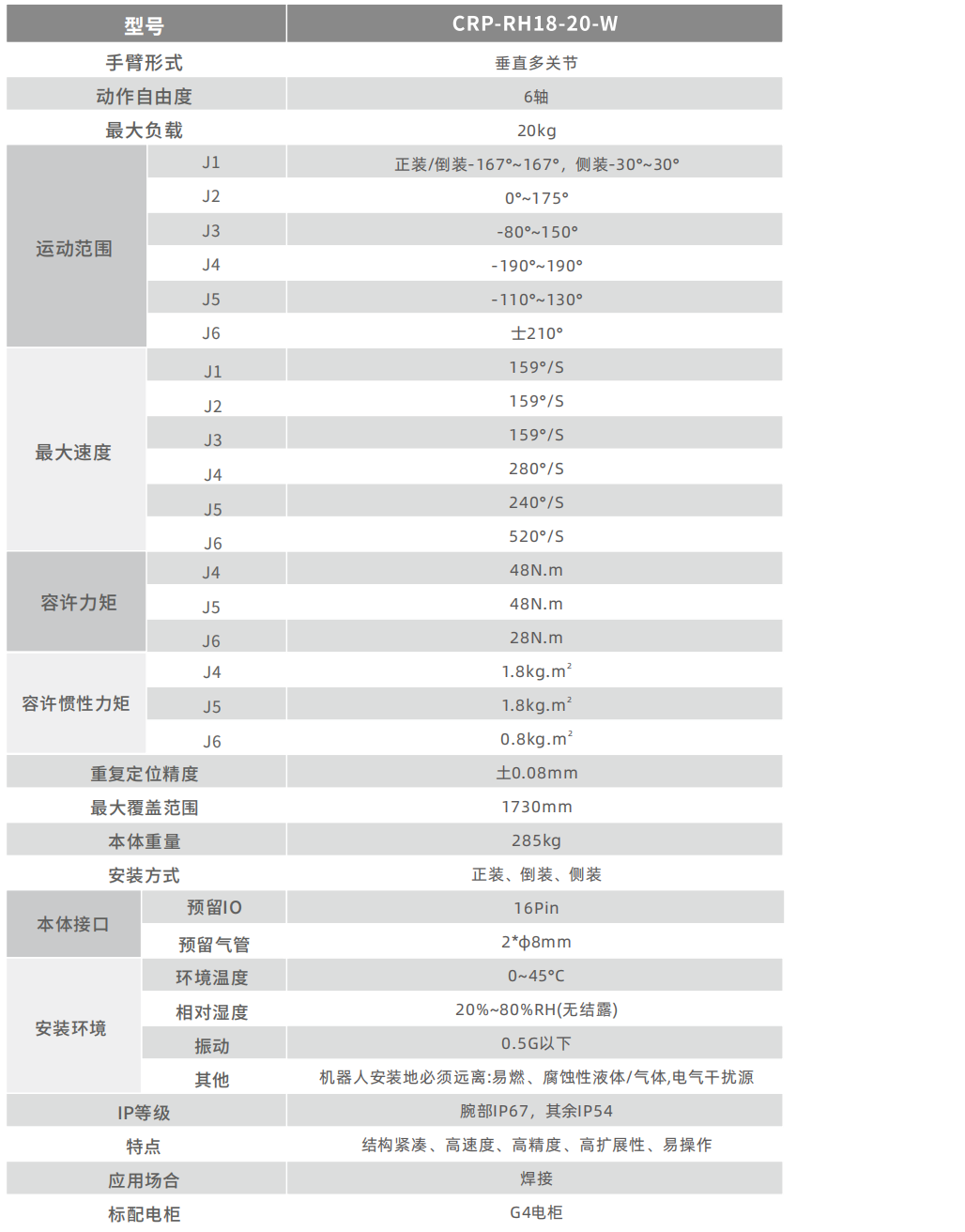 工作空間大、運行速度快、重復定位精度高,適用于焊接應用,適用范圍廣。