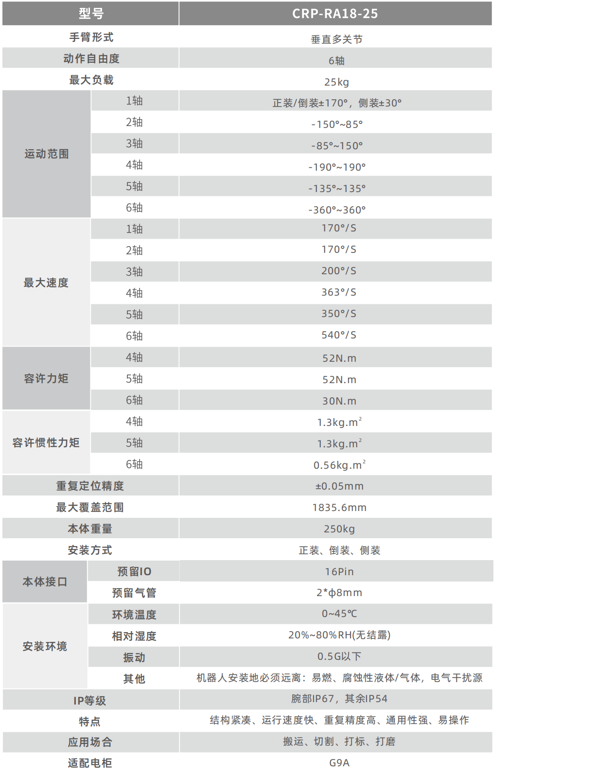 機器人整體結構高度緊湊、輕量化,更加輕巧適用,尤其腕部更加小巧,滿足更多的場景。