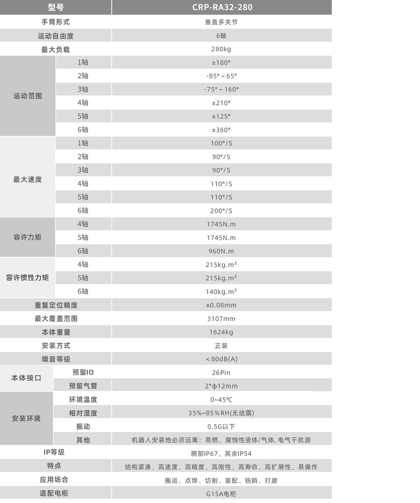 • 電機內置,外觀簡潔,適于狹小空間作業,運動更靈活。