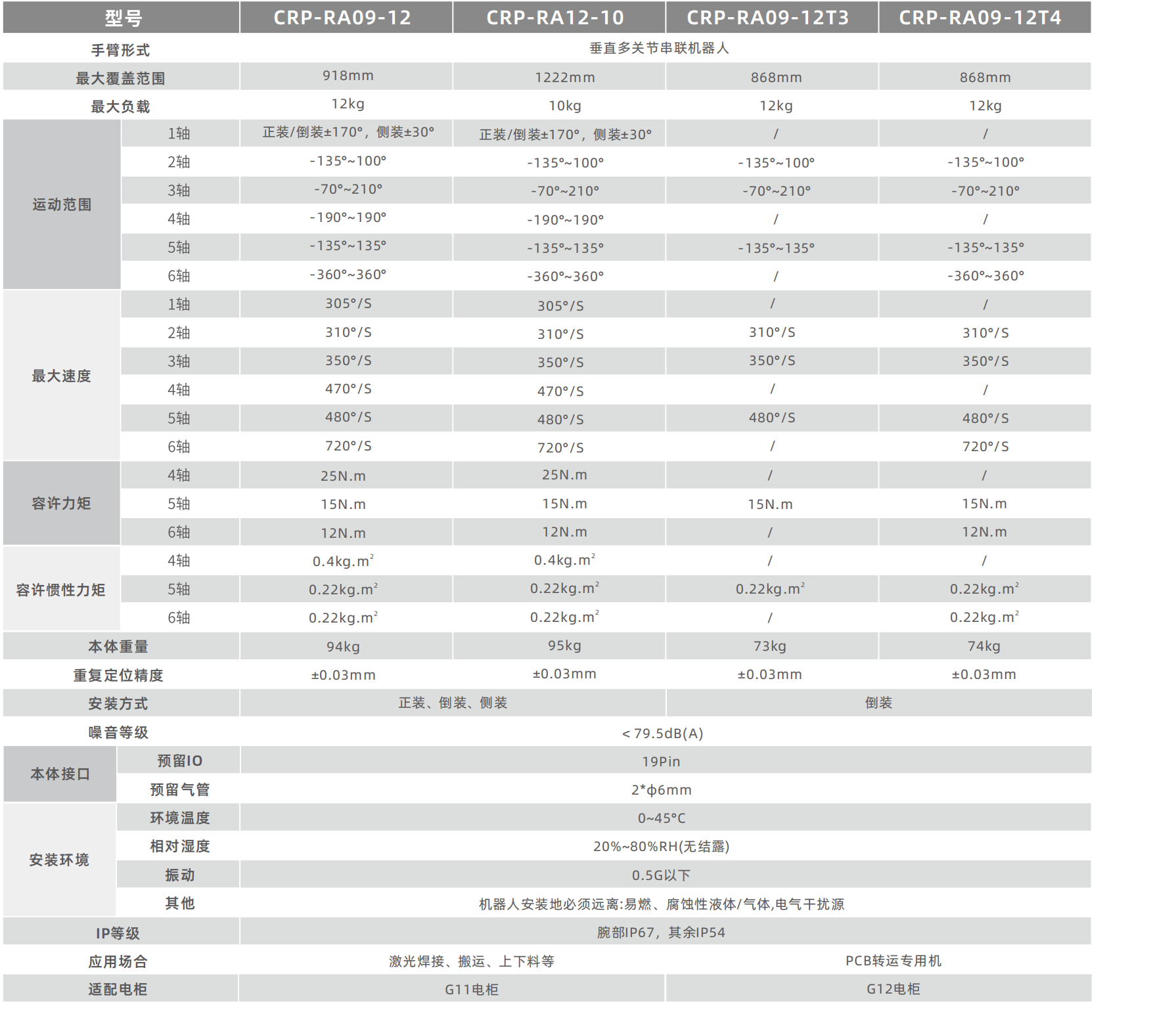 高速高精,效率更高。整機采用全鋁機身設計,較同級別產品質量更輕,RA09-12系列相比RA09A-07系列左右速度提高了30%,標準門型軌跡0.42S,重復定位精度士0.03mm,實現快速生效,提高生產產能。